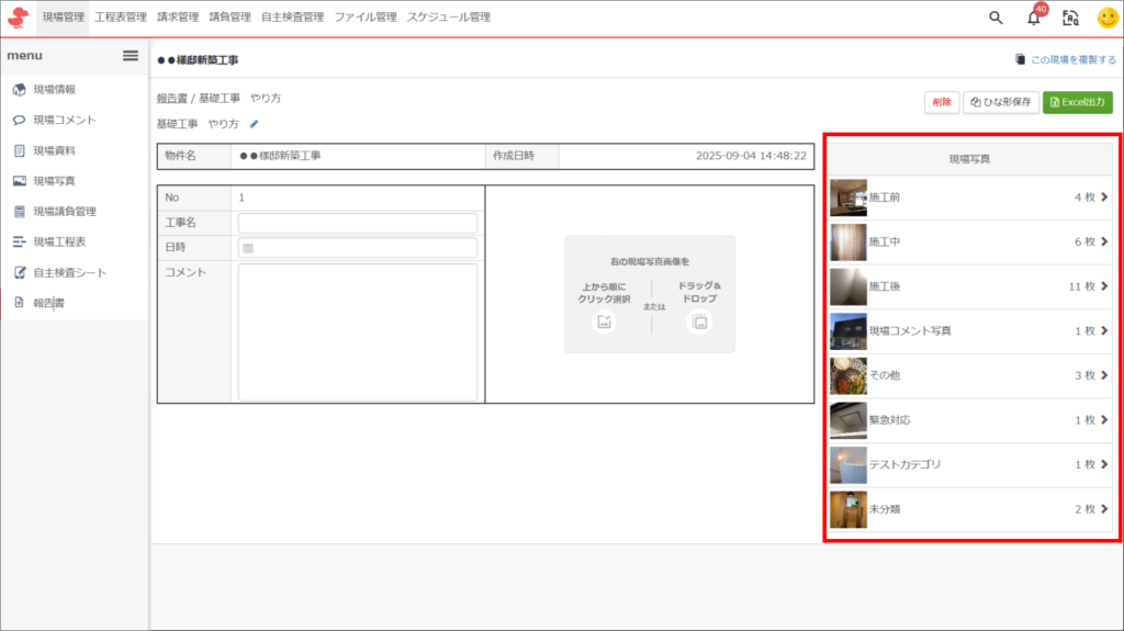 ⑥現場写真のカテゴリを選択