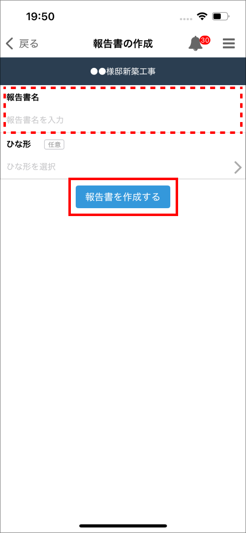 ③報告書名を入力し、「報告書を作成する」をタップ