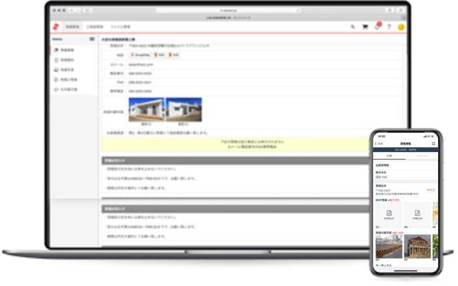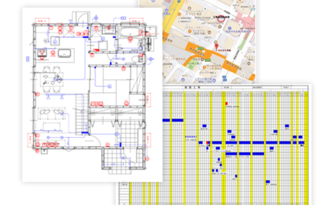 現場の図面・仕様書・工程表など各種資料が一元管理することができます。